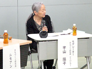 | 第2部 | トークセッション 「まちづくり研究員トークセッション~活動のきっかけと、まちとのつながりの変化~」と題し、当機構の元常務理事で当事業アドバイザーの宇山陽子氏がモデレーターを務め、第1期の鈴木俊彦氏・林賢氏・ルモアン直美氏、第4期の中島慎一氏がパネリストとして登壇されました。 研究員に応募した動機や現在の活動とのつながり、また、当事業に期待すること等をお話いただき、研究員や事務局の今後の活動に活かすことのできる意見をいただきました。 参加人数:17人