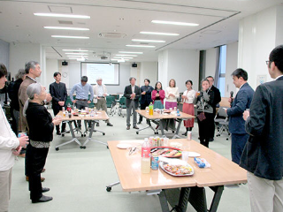 | 第3部 | 交流会 亜細亜大学教授で当事業アドバイザーの石田幸生氏に祝辞をいただき、アドバイザー・研究員・事務局が参加する交流会を開催しました。 参加人数:18人