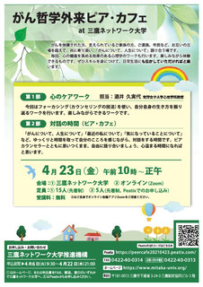 がん哲学外来ピア・カフェ at 三鷹ネットワーク大学 4月【オンライン同時開催】