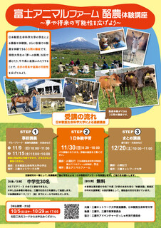 日本獣医生命科学大学の学生による講義や体験談、さらに牧場での酪農を体験できる3日間の講座です。