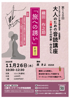 大人のための音読講座 三鷹ゆかりの作家・作品たち(150)11月