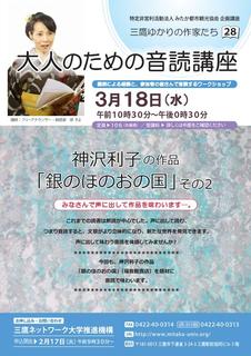 大人のための音読講座(ワークショップ付朗読会)三鷹ゆかりの作家たち(28)
