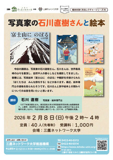 今回の講師は、写真家の石川直樹さん。石川さんは、世界最高峰の山々を登頂し、自然や人の暮らしなどを撮影してきました。著書には、写真絵本「富士山に のぼる」や翻訳を手掛けられた「ぼくたちは みんな旅をする」などがあります。最近、絵本専門士の資格を取られたそうです。石川さんと旅や絵本との関わりについてのお話を伺いたいと思います。