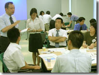 CCP研究会では、夏休みや授業が終わってからの放課後の時間を利用し、三鷹駅前の「三鷹ネットワーク大学」で、各校の先生方と、プログラムの研究や、各校の進捗の情報共有などを行っています。